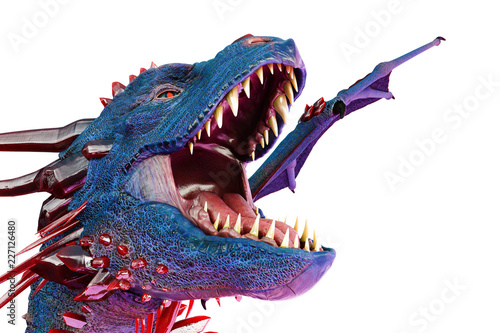 © DM7, Naklejka premium Cristal czerwony niebieski smok na białym tle
