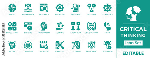 Fototapeta premium Critical Thinking Icon Set. Features icons of analysis, problem solving,...