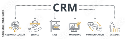 © Sanjaya, Naklejka premium Crm web banners concept vector illustration with keywords and icons
