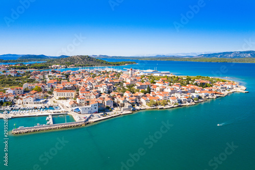 Fototapeta premium Croatia, Adriatic coast, panoramic view of the small town of Betina from air on Murter island