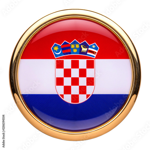 © ochikosan, Naklejka premium クロアチアの国旗のブローチ。白背景。(Croatia flag brooch on white background.)