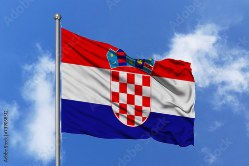 Naklejka premium Croatia flag fluttering in the wind on sky.