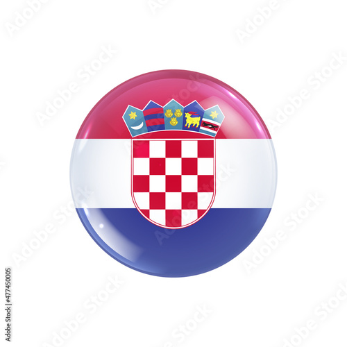© Aleksandr Gladkiy, Naklejka premium Croatia flag icon round badge or button. Glossy sphere vector illustration.