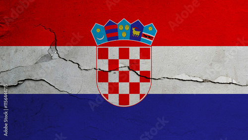 © Ailad, Naklejka premium Croatia flag on cracked wall background, flag with crack line