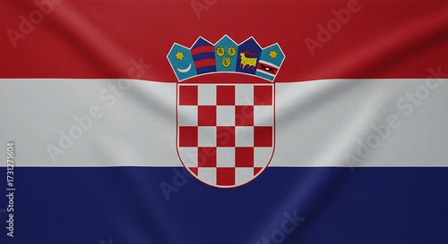 © Kapten, Naklejka premium Croatian flag waving with national emblem and detailed texture