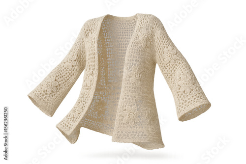 © whitestorm, Obraz premium Crochet cardigan with floral pattern isolated on transparent background, stylish
