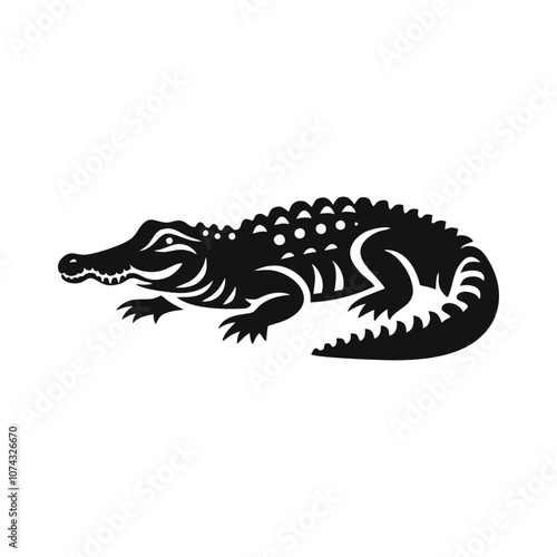 © JimzStd, Naklejka premium crocodile alligator icon silhouette black white