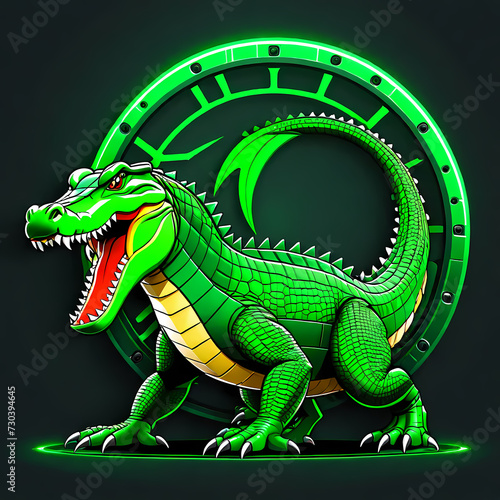 Fototapeta premium Crocodile alligator strong angry mascot esports logo with modern illustration for gaming and streamer. Suitable for badge, emblem and t shirt printing. Angry crocodile logo for sport and esport.