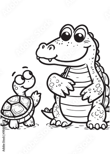 Fototapeta premium Crocodile and turtle kid coloring page