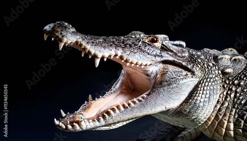 © Julia, Obraz premium Crocodile close-up, wildlife portrait, intense gaze, scaly texture, sharp teeth, reptile macro