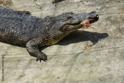 © Natalia, Obraz premium Crocodile eating whole raw chicken