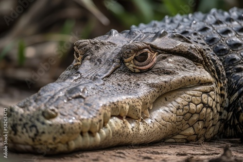 Fototapeta premium Crocodile farm, Criadero de Crocodilos, Wetland, Zapata Peninsula, Matanzas province, Cuba, Republic of Cuba, Greater Antilles, Crocodile portrait, Guam Natural Reserve, Zapata Peninsula,. Generative