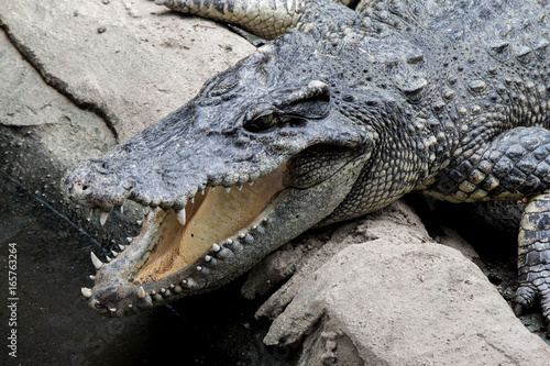 © P Stock, Naklejka premium Crocodile hunter sleeping on land.