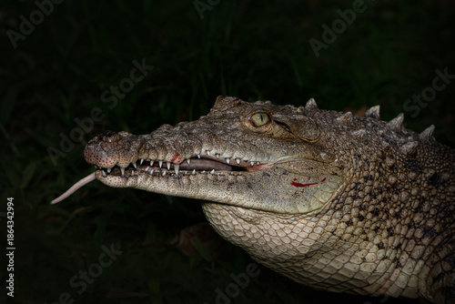 © Carlos, Fototapeta premium Crocodile hunting prey close up on dark background