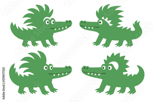 Naklejka premium Crocodile illustration, colorful minimalist style, mid-century modern, childlike shapes, whimsical character design, no outlines, solid colors, stylized proportions