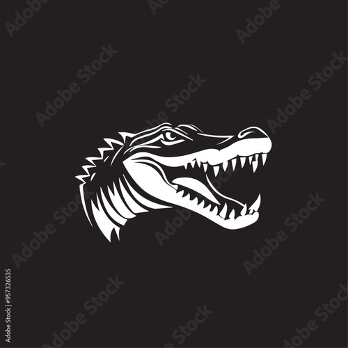© Anton HUKB30f, Fototapeta premium crocodile in cartoon, doodle style . Image for t-shirt, web, mobile apps and ui. Isolated 2d vector illustration in logo, icon, sketch style, Eps 10, black and white. AI Generative