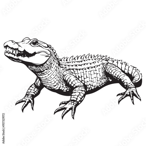© Anton HUKB30f, Fototapeta premium crocodile in cartoon, doodle style . Image for t-shirt, web, mobile apps and ui. Isolated 2d vector illustration in logo, icon, sketch style, Eps 10, black and white. AI Generative