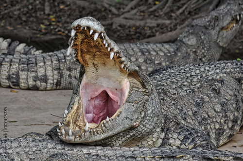 Naklejka premium Crocodile in wide open mouth