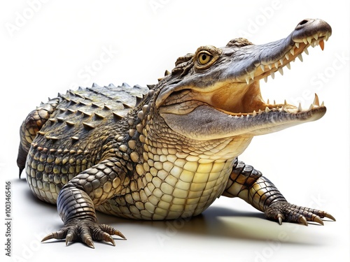 Fototapeta premium Crocodile isolated against a white background, ideal for nature, wildlife,...