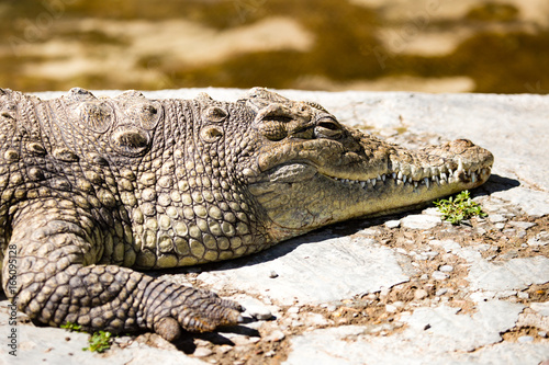 © schankz, Obraz premium Crocodile lies on concrete in the zoo