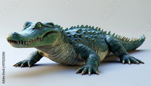 © Andrii, Fototapeta premium Crocodile On A White Background With Clipping Path Included For Easy Editing And Removal Of Background, Perfect For Various Design Projects.