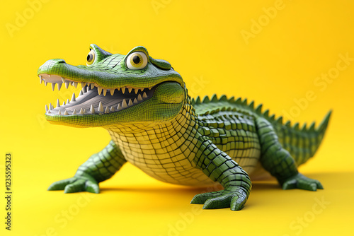 © Noufaldi, Fototapeta premium crocodile on a yellow background, crocodile on a blank yellow background, a crocodile, crocodile, cute crocodile, yellow background, Copy Space For Add Text 3D Rendering, 3D, Vector, AI Generative