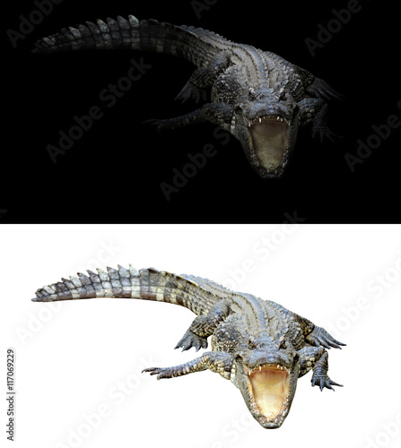 © anankkml, Fototapeta premium crocodile on dark and white background