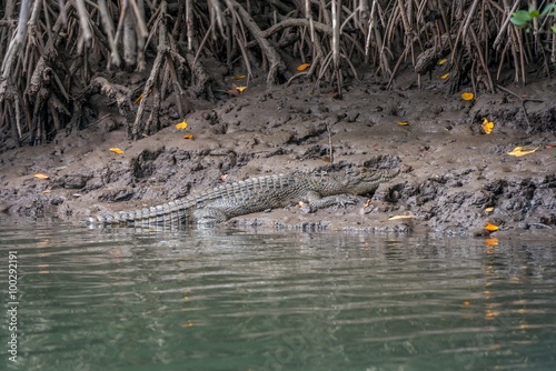 © Jens Metschurat, Fototapeta premium crocodile on river bank, Daintree