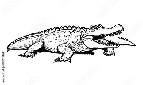 Fototapeta premium Crocodile outlined vector illustration in side view, perfect for wildlife study, logos or children’s books