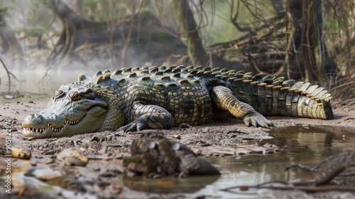 Obraz premium Crocodile Resting in a Swamp