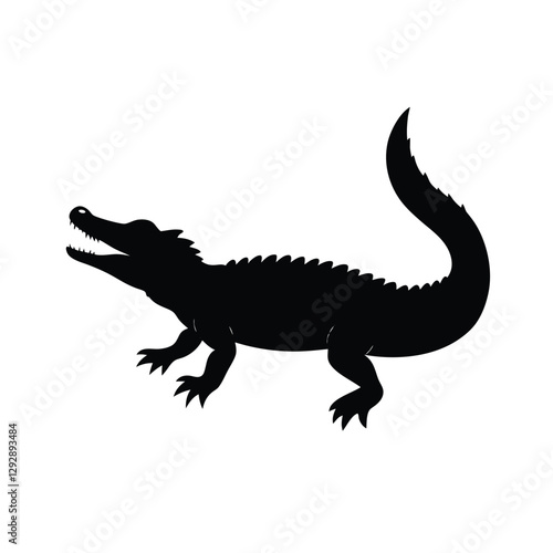 Fototapeta premium Crocodile Silhouette Vector Art Illustration and Minimalist Crocodile Black Color Design