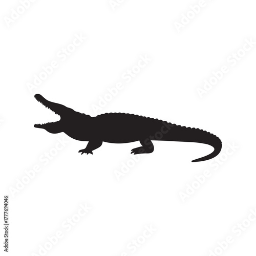 Fototapeta premium Crocodile Silhouette with Open Mouth and Curved Tail Isolated on White Vector