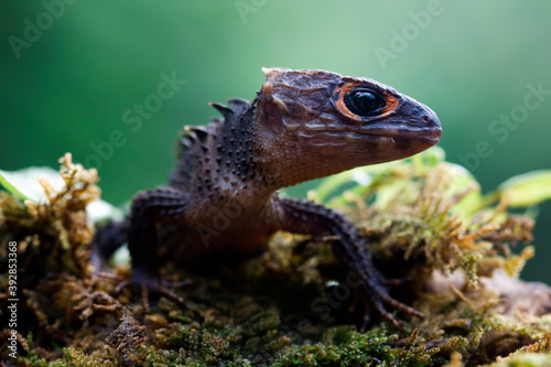 © kuritafsheen, Fototapeta premium Crocodile skink closeup head from side view on branch