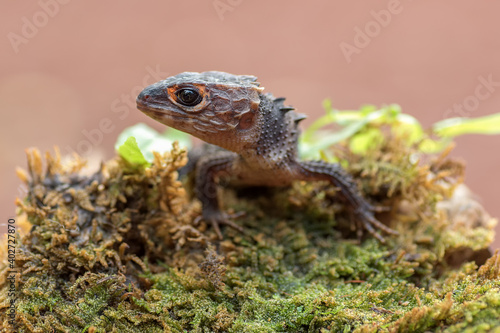 Obraz premium Crocodile skink lizard on a tree branch