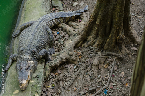 © buttlefly, Obraz premium Crocodile sunbathing beside a tree