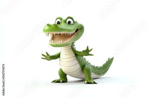 © Atonu, Fototapeta premium Crocodile tail-slapping 3d cartoon character on white background