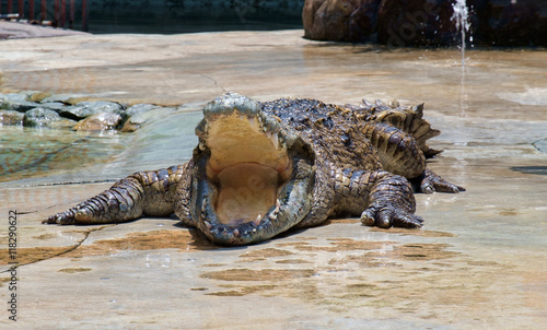 © wimage72, Naklejka premium Crocodile / View of crocodile swamp with open mouth.