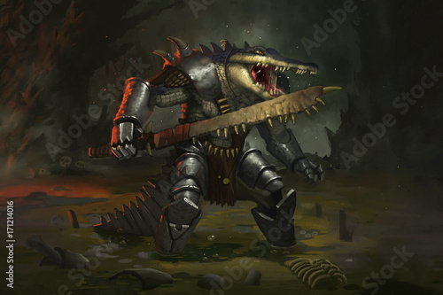 Fototapeta premium Crocodile warrior in the swamp
