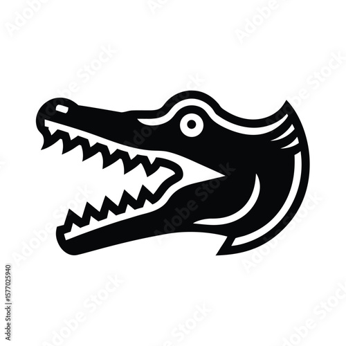 Fototapeta premium Crocodile With Open Jaw Outline Vector Illustration