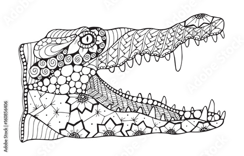 Naklejka premium Crocodile zentangle stylized, vector, illustration, pattern, freehand pencil,...
