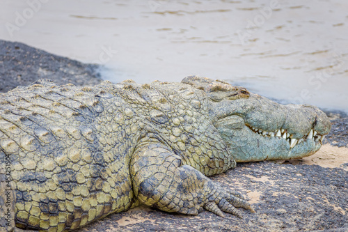 © Ruzdi, Obraz premium Crocodiles by the Mara River in Masai Mara, Kenya