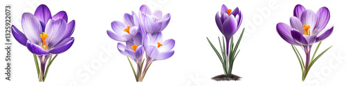 © Sawera, Naklejka premium Crocus flower isolated on transparent background, PNG, Set of
