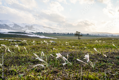 Obraz premium Crocus sativus, crocus alatavicus blooming in spring