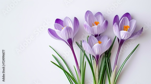 © Yahor Shylau , Fototapeta premium crocuses on a white background with space for text.