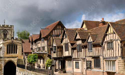 © Reimar, Fototapeta premium Crooked Medieval tudor houses of Lord Leycester Hospital for ex-servicemen at Chapel of St James over West Gate on High Street Warwick England