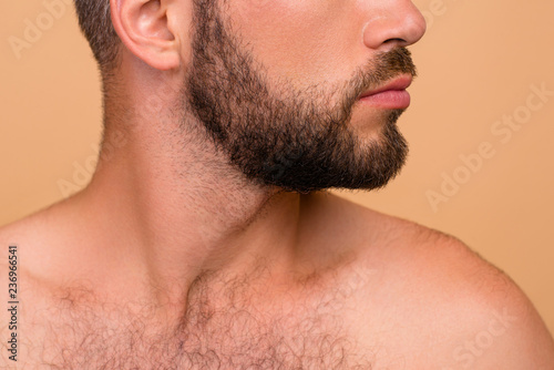 © deagreez, Obraz premium Cropped close-up of nice bearded attractive handsome nude guy sp