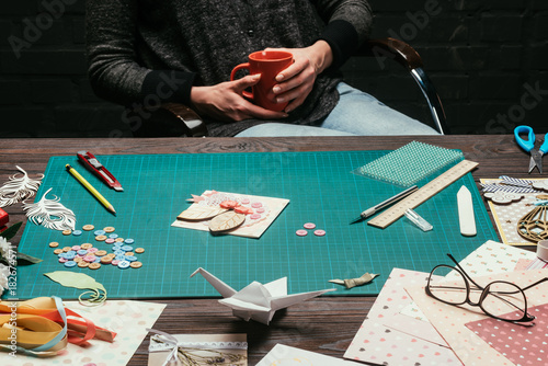 © LIGHTFIELD STUDIOS, Obraz premium cropped image of woman sitting and holding cup of coffee in hands