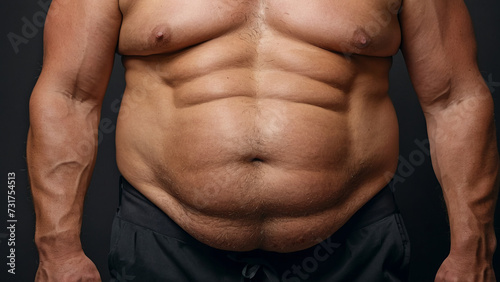 © Tatiana Foxy, Fototapeta premium Cropped man body with sagging belly