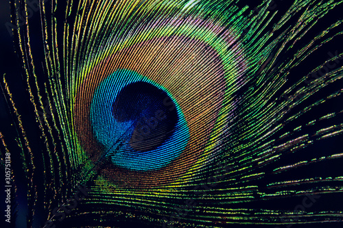 Fototapeta premium Cropped shot of beautiful peacock feather texture. Abstract colorful nature background.