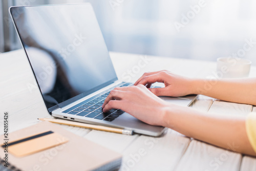 © LIGHTFIELD STUDIOS, Fototapeta premium cropped view of woman typing on laptop at home